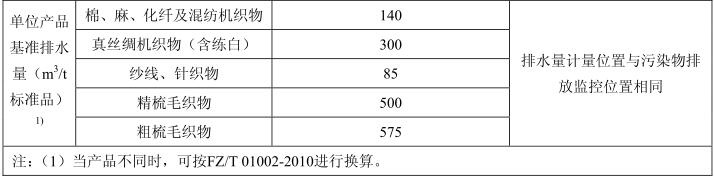 指用于核定水污染物排放濃度而規(guī)定的生產(chǎn)單位印染產(chǎn)品的廢水排放量上限值。