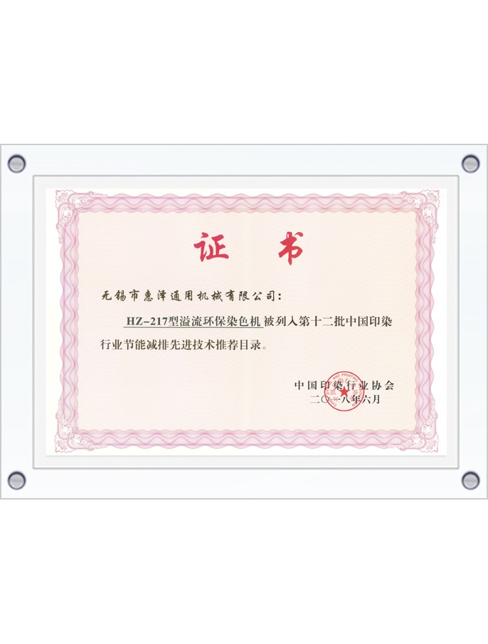 HZ217-節(jié)能減排先進技術推薦目錄證書